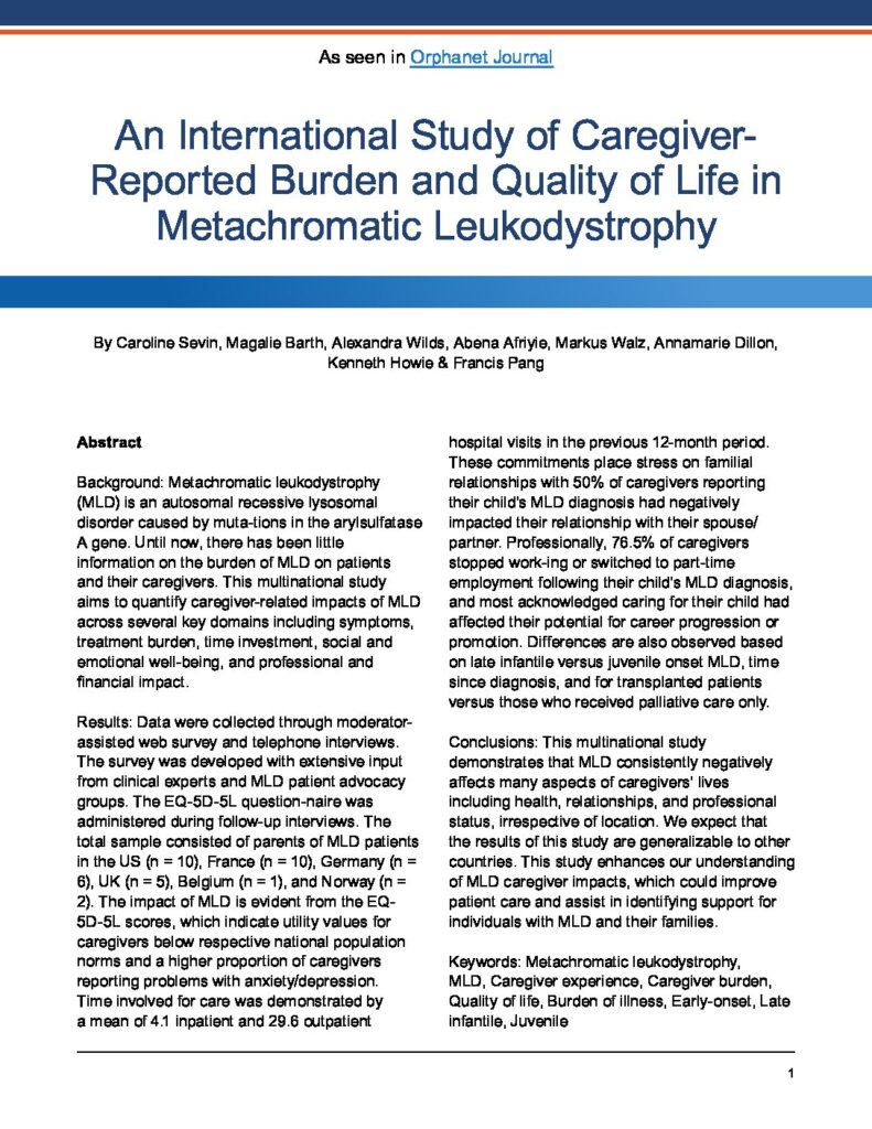 An International Study of Caregiver – Reported Burden and Quality of Life in Metachromatic Leukodystrophy