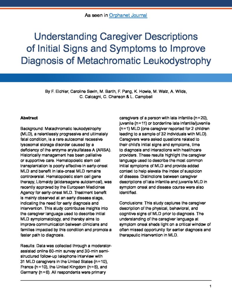 Understanding Caregiver Descriptions of Initial Signs and Symptoms to Improve Diagnosis to Metachromatic Leukodystrophy
